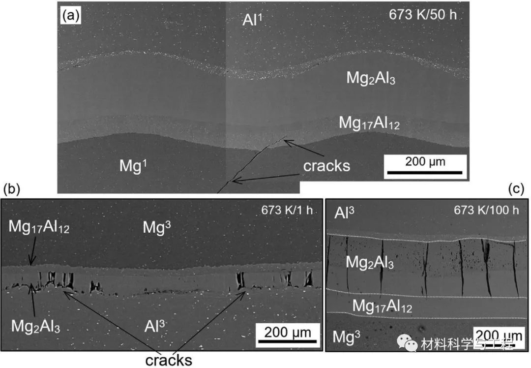 在退火过程中施加3 MPa的压力能够有效避免加热过程中结合层分离,但无法防止β-Mg2Al3相中线性裂纹的形成,这显着降低了复合材料的可成形性。在试验期间,观察到结合层的快速分离。在573 K下测试的样品具有最高的完整性。对于所有退火样品和其他温度下测试的焊后样品,接头强度显着降低,并且由于β-Mg2Al3相内部形成裂纹,将沿所有界面发生分离。本文阐明了热处理期间层状复合材料结合层扩散的动力学,本研究对爆炸焊制备层状复合材料的实际应用有积极作用。