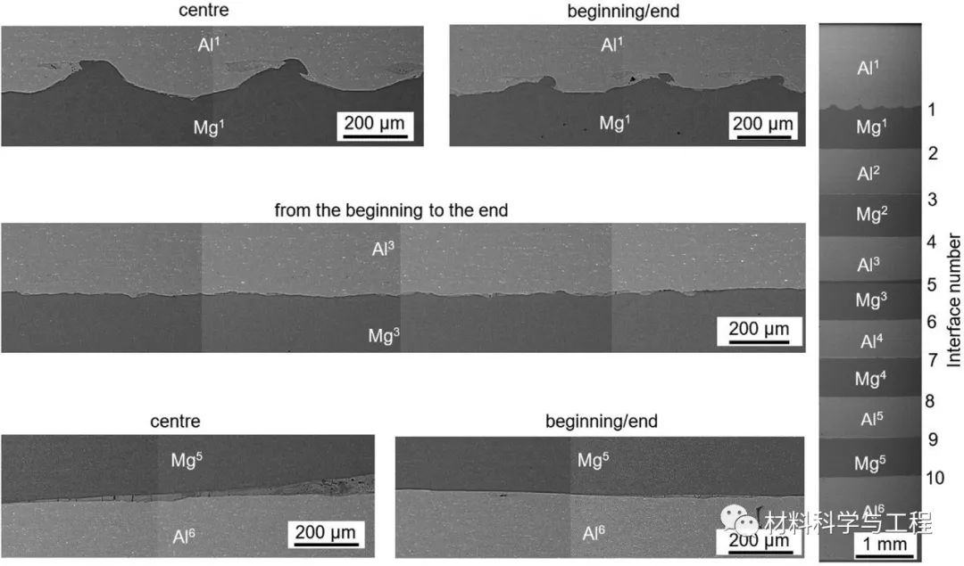 近几十年来,镁合金制造的零件因其低密度、高比强度和刚度的理想组合而引起了相当大的关注。镁合金板作为均质结构材料由于其较差的可加工性而受到限制。据报道,通过引入一层或多层铝来形成铝/镁(多)层复合材料,可以显着提高镁层的可加工性。目前,爆炸焊接(EXW)是制造由铝和镁合金板的最佳方法之一。现有报道中关于铝和镁合金EXW过程中形成金属间化合物的报道极为稀少,只有少数论文涉及两层或三层复合材料的接头起源,所得结果存在一定争论。尽管已有研究成功制备出多层复合材料,但很少有人关注该工艺在考虑Al和Mg基金属成分方面的特殊性。尚不清楚EXW参数如何影响板的宏观/微观结构,即复合材料界面的波浪/平坦特征、结合层内部微观结构和化学成分;界面结构的变化是否会影响进一步热处理操作期间扩散过程的动力学也不明确。