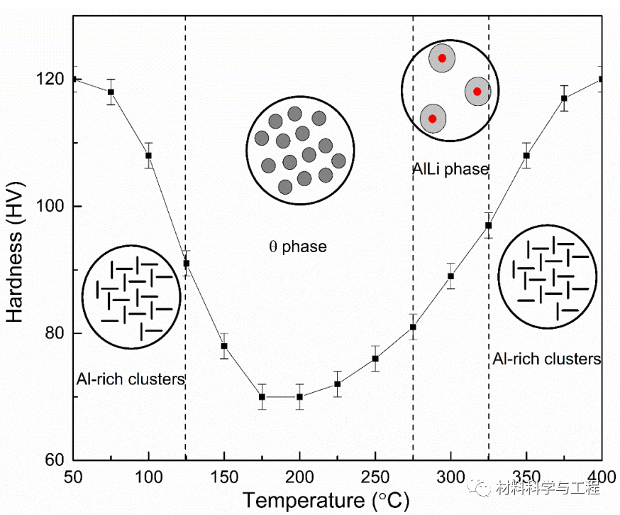 图5. 随着温度变化,LA113合金中的相变过程以及各个相对力学行为的影响。