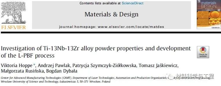 波兰弗罗茨瓦夫理工大学的一项最新研究根据Ti-13Nb-13Zr的化学成分选择合适参数以及明确加工粉末的工艺窗口,从而制备出致密度更高的试样。相关论文以题为“Investigation of Ti-13Nb-13Zr alloy powder properties and development of the L-PBF process”发表在Materials & Design。