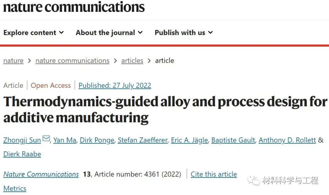 在此,来自德国马普所的研究者使用商业上重要的IN738LC高温合金作为模型材料,通过解决热裂问题来说明了上述方法。相关论文以题为“Thermodynamics-guided alloy and process design for additive manufacturing”发表在Nature Communications上。