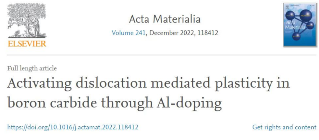 相关研究成果以题“Activating dislocation mediated plasticity in boron carbide through Al-doping”发表在Acta Materialia上。