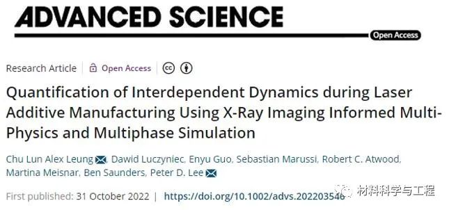 顶刊(IF=17.521):定量研究激光增材制造过程的相互依赖动力学!