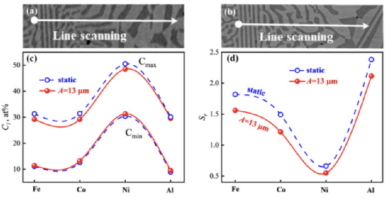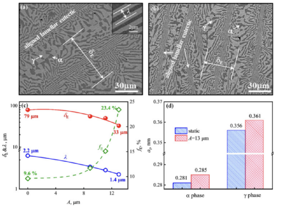 AlCoCrFeNi2.1、Al0.9CoFeNi2和Al0.7CoCrFeNi等具有共晶结构的高熵合金,因其优异的力学性能而受到广泛关注。为了进一步优化结构和性能,采用了多种方法和途径。例如,Wu等人采用多次冷轧退火,使Ni30Co30Cr10Fe10Al18W2合金充分释放应变硬化能力,表现出优异的拉伸性能。Wani等人量身定制了AlCoCrFeNi2.1的异质结构,通过冷轧制造了线路缺陷,显著增强了强度。然而,这些策略都是基于固态加工,很少有关注液固之间的转变来调节微观结构和提高力学性能的报道。这极大地限制了高熵合金铸件的发展和应用潜力。