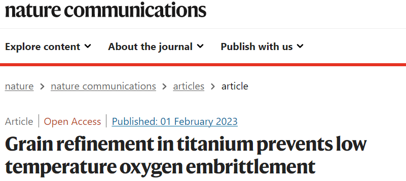 钛合金又发Nature communications:晶粒细化防止低温氧脆