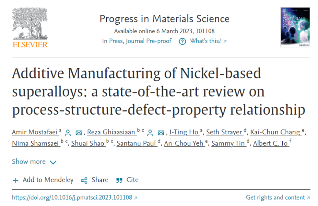 亚利桑那大学材料科学与工程系单位Albert C. To、伊利诺伊理工大学Amir Mostafaei等人的研究团队对此进行了研究,相关研究成果以题为Additive Manufacturing of Nickel-based superalloys: a state-of-the-art review on process-structure-defect-property relationship发表在Progress in Materials Science上。