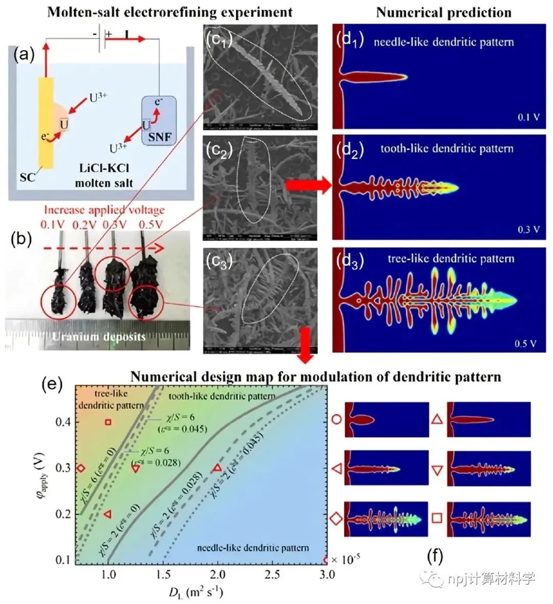 Fig. 4 Comparison of dendrite morphology between simulation and experiment.