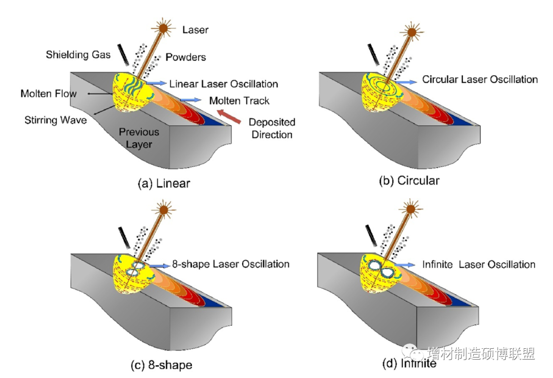 在本研究中,研究了一种新型的集成增材制造技术——振荡激光熔化沉积,并在线性、圆形、8形和无限四种激光振荡下制备了Ti6Al4V。分析了不同激光振荡对合金显微组织演变和力学性能的影响。