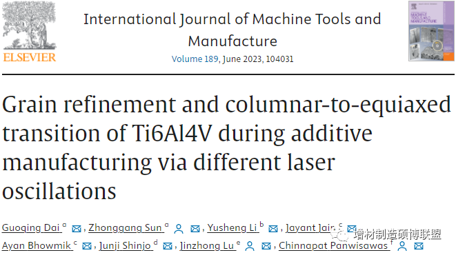 南京工业大学、南京理工大学、印度理工学院、日本岛根大学、江苏大学、伦敦玛丽女王大学的研究人员联合在International Journal of Machine Tools and Manufacture 国际杂志上发表文章 Grain refinement and columnar-to-equiaxed transition of Ti6Al4V during additive manufacturing via different laser oscillations。