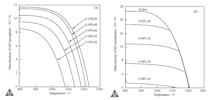 图2 不同Al含量对AlN和BN析出的影响