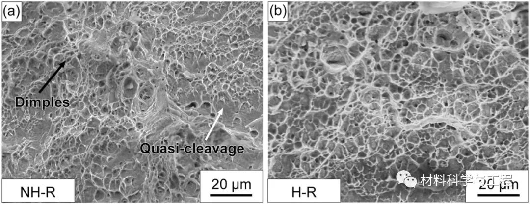 图6(a)NH-R样品的断裂面,(b)HR样品的断裂面。