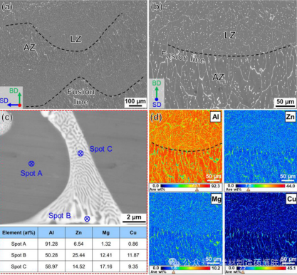 作为可沉淀强化的轻质材料,Al-Zn-Mg-Cu合金因其高比强度、高损伤容限和优异的可加工性能而广泛应用于航空航天领域。然而,由于7xxx系列铝合金存在高热裂和氧化敏感性,激光粉床熔融(LPBF)增材制造或电弧增材制造(WAAM)的快速冷却速率和大热输入可能导致粗晶粒、元素分离和多种缺陷(如裂纹和孔隙),从而损害7xxx系列铝合金的性能。