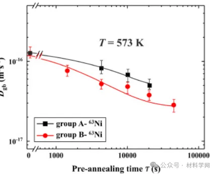 系统分析可以区分偏析和沉淀对GB扩散速率的影响。建立了预退火时间对GB扩散速率影响的模型,并对实验结果进行了满意的预测。