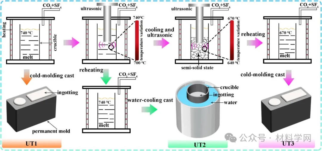 为此,重庆理工大学联合重庆大学蒋斌教授团队报道了Mg-10 Gd-1.7Y-1Zn0.5Zr合金的进展,同时进一步开发了铸态Mg-10Gd-1.7Y-1Zn-0.5Zr镁合金,研究了超声波处理对铸态和时效态合金组织和力学性能的影响。