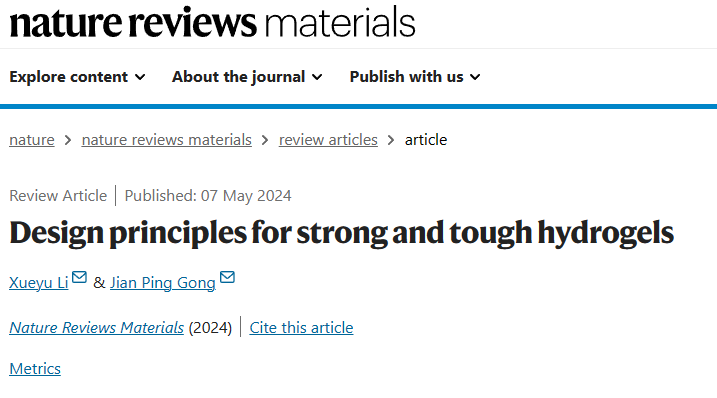 IF=83.5 !龚剑萍教授最新《Nat. Rev. Mater.》综述:强韧水凝胶设计策略