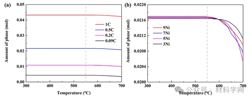 图22利用thermocalc软件和tcfe8数据库对Si改性奥氏体不锈钢的相变进行热力学计算。(a) 550℃时M23C6碳化物的数量与C含量(基于Fe-x C-17 Cr-7 Ni-5 Si-0.65 Mn (at.%)),