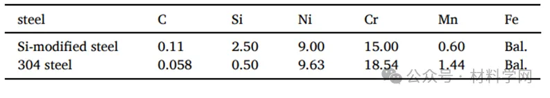 表1Si改性和304奥氏体不锈钢wt.%的化学成分。