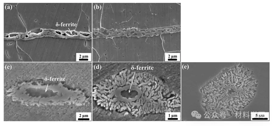 AISI 300系列奥氏体不锈钢因其优异的力学性能和良好的成形性,被广泛用作轻水反应堆和第四代核反应堆的结构材料。为了提高在液态金属、超临界水或熔盐等恶劣环境下的耐腐蚀性,硅改性奥氏体不锈钢被开发出来,因为添加硅可以促进氧化保护膜的形成。由于Si是一种强铁素体稳定元素,因此Si的加入会使奥氏体合金不稳定,导致δ-铁素体形成的高倾向性。在大型工业坯料中,由于凝固时间的延长,δ-铁素体的形成是不可避免的冷却速度慢。研究发现较长的凝固时间促进了元素的偏析程度,较低的冷却速度增加了凝固反应的时间,导致180 mm厚AISI 316连铸板坯中δ-铁素体的数量明显增加。此外,Si是负偏析元素,比Cr和Mo具有更高的偏析。