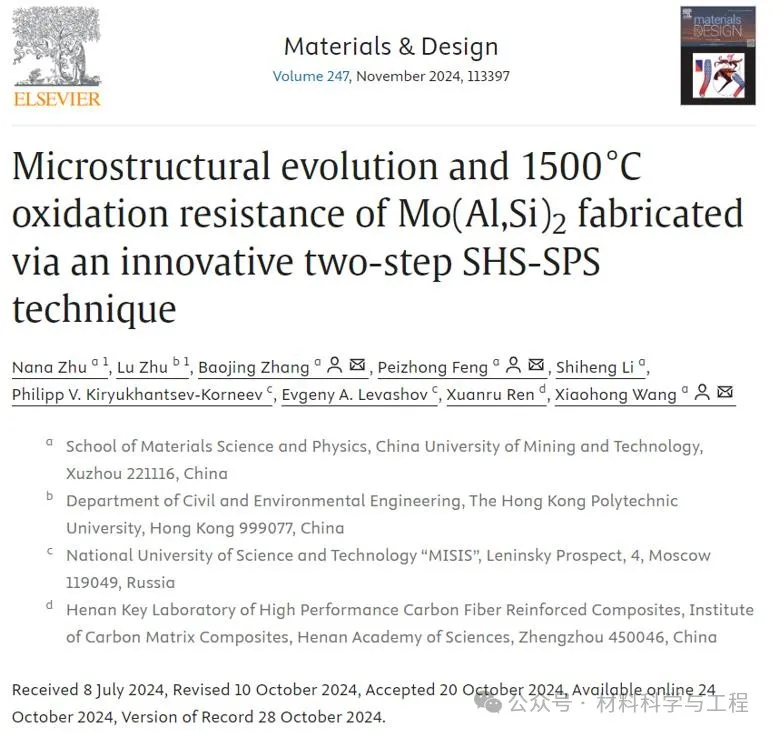 《Mater Des》:1500℃长寿命!二硅化钼材料高温抗氧化研究新进展
