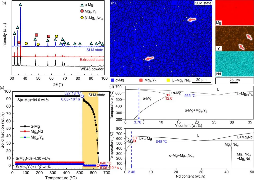 (a)不同状态下WE43粉末和合金的XRD光谱;