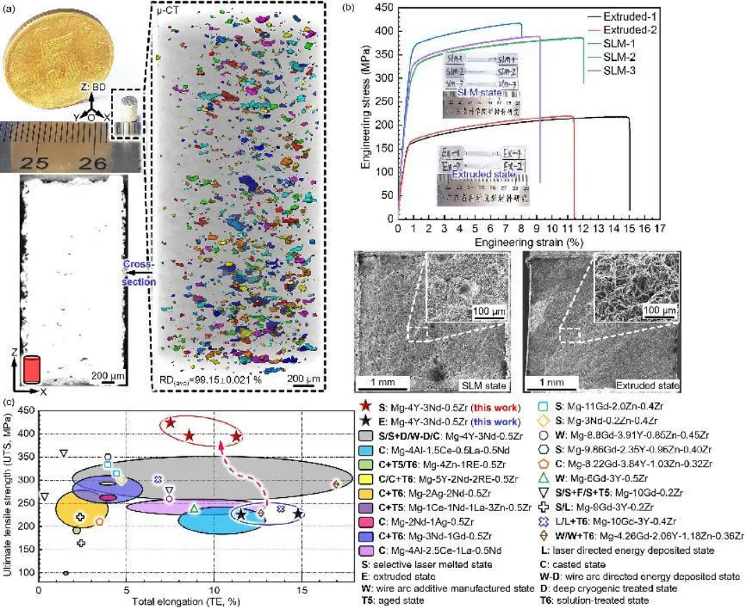 镁合金,尤其是镁稀土(Mg-RE)合金,凭借优良的生物相容性、促血管生成特性、与皮质骨相近的弹性模量,在医疗植入物领域极具潜力。然而,其标准电极电位低,在体内降解迅速,且传统工艺制备的合金机械性能一般,限制了实际应用。选择性激光熔化(SLM)技术因独特优势为解决这些问题带来希望,但用于Mg-RE合金时存在内部残余应力高、元素熔点差异大导致加工窗口窄等难题。