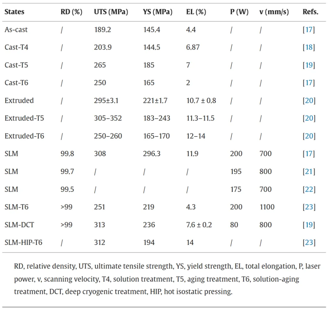 表1 SLM在不同状态下制造了WE43合金