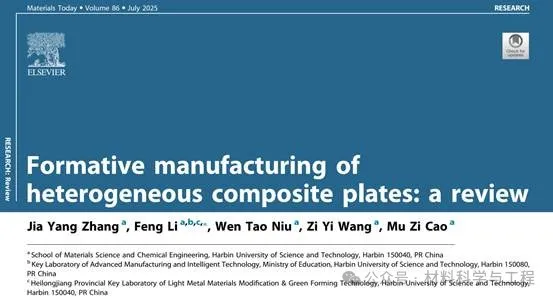 异质复合板因具有性能优异且功能集成等特性,在航空航天、轨道交通、能源动力、尖端武器等领域高端装备关重部件制造过程中备受青睐。近日,哈尔滨理工大学的综述论文“Formative manufacturing of heterogeneous composite plates: a review”在本领域国际Top期刊《Materials Today (IF:21.1)》上发表,为该校首篇,包含团队的多项研究成果。哈尔滨理工大学是唯一完成单位,李峰教授是唯一通讯作者。