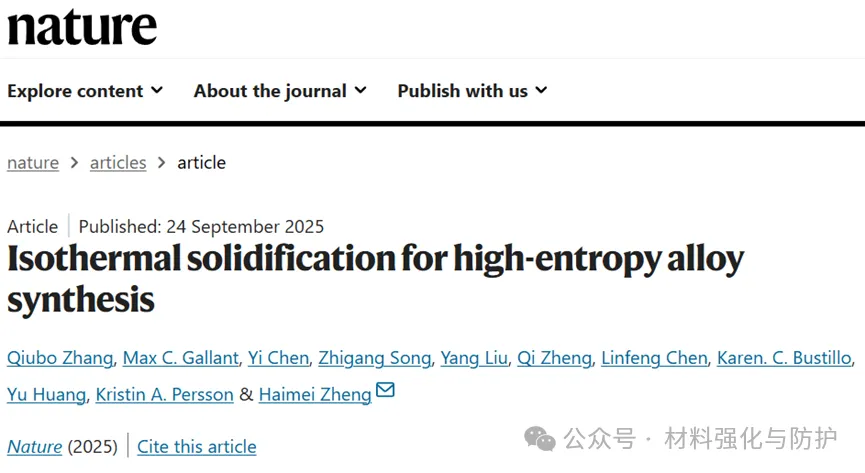 高熵合金(HEA)纳米材料在催化、电池等领域具有相当大的潜在应用,传统方法中依赖快速冷却凝固合成HEA,但难以控制产物的结构与形态,湿化学法可以在较低温度合成且能调控粒径、形态等,却仅适用于热力学平衡下可混溶的元素组合,目前仍缺乏能突破这些限制的创新合成方法,需要开发出新策略以实现HEA更灵活、精准的合成。近日,一项发表在《Nature》正刊上的研究打破了这些限制,该研究提出了一种“等温凝固”策略,让高熵合金的合成进入低温、可控的新纪元。