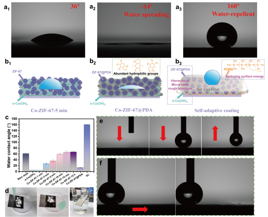 这项工作提出了一种仿生策略用于开发兼具超疏水性、自修复和实时损伤感知的智能防腐蚀涂层,推进了MOF衍生材料在防护涂层中的应用。