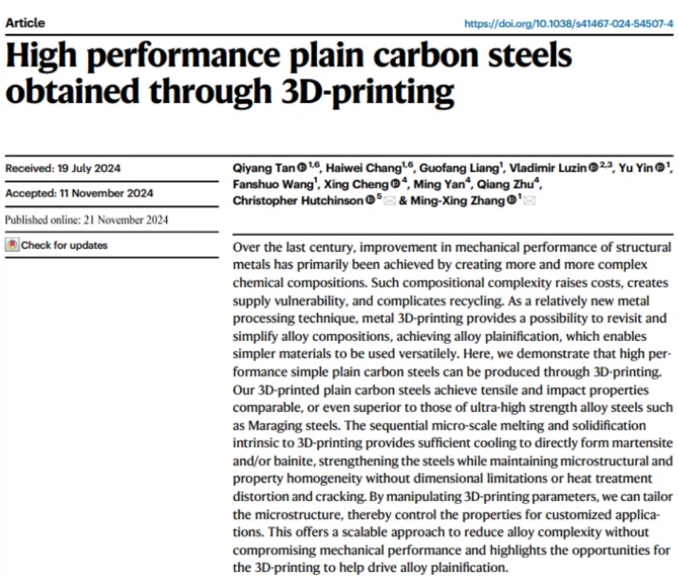 千年古老材料焕新生:碳素钢荣登《Nature》子刊!
