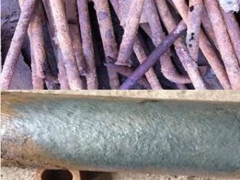 图为涂刷普通防腐涂料使用一年(上)和ZM99-01A13涂料实验4个月(下)的对比
