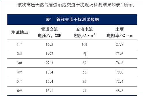 近年来,随着城市的发展,高压电线和管道铺设增加,这使得越来越多的管道铺设时与高压输电线并行。当金属管道与高压输电线并行时会受到来自电力系统的交流干扰。交流干扰将会加速管道腐蚀穿孔、干扰管道阴极保护系统、引起牺牲阳极与管道间发生极性逆转、对工作人员产生电击危害,严重威胁着管道的运行安全。因此,有效的交流干扰检测与防护措施对于确保天然气管道的安全运行有着重要的意义。