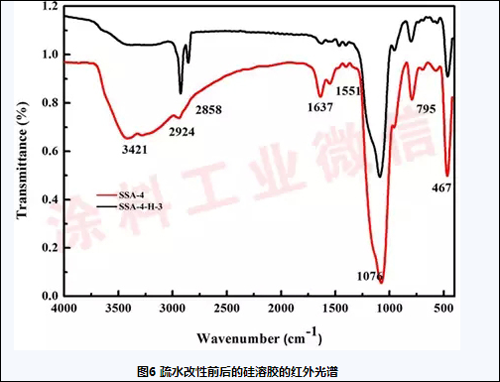 对HDTMS改性前后的硅溶胶进行红外表征,结果如图6所示。