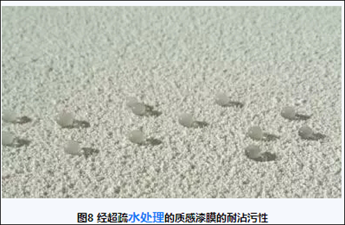 (2)超疏水涂层能够赋予真石、质感漆膜超疏水特性以及耐沾污性。