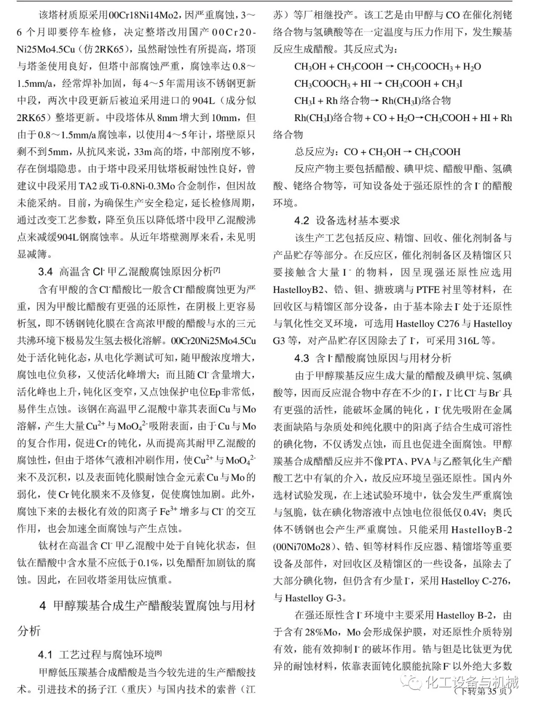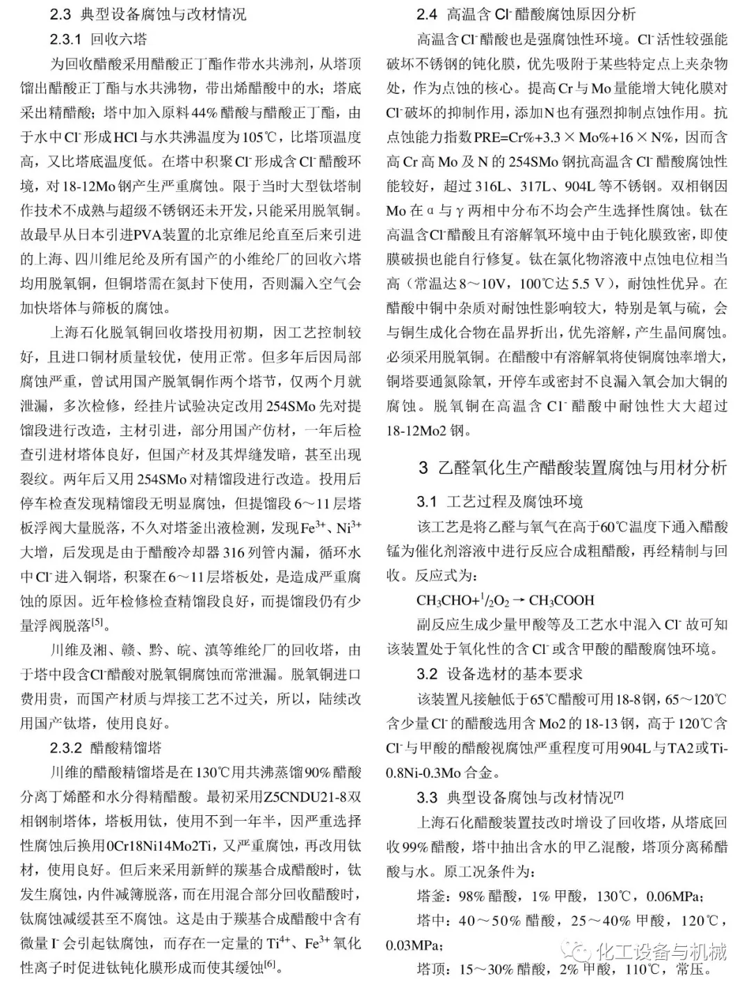 实用技术:化工化纤生产中醋酸设备腐蚀与用材分析
