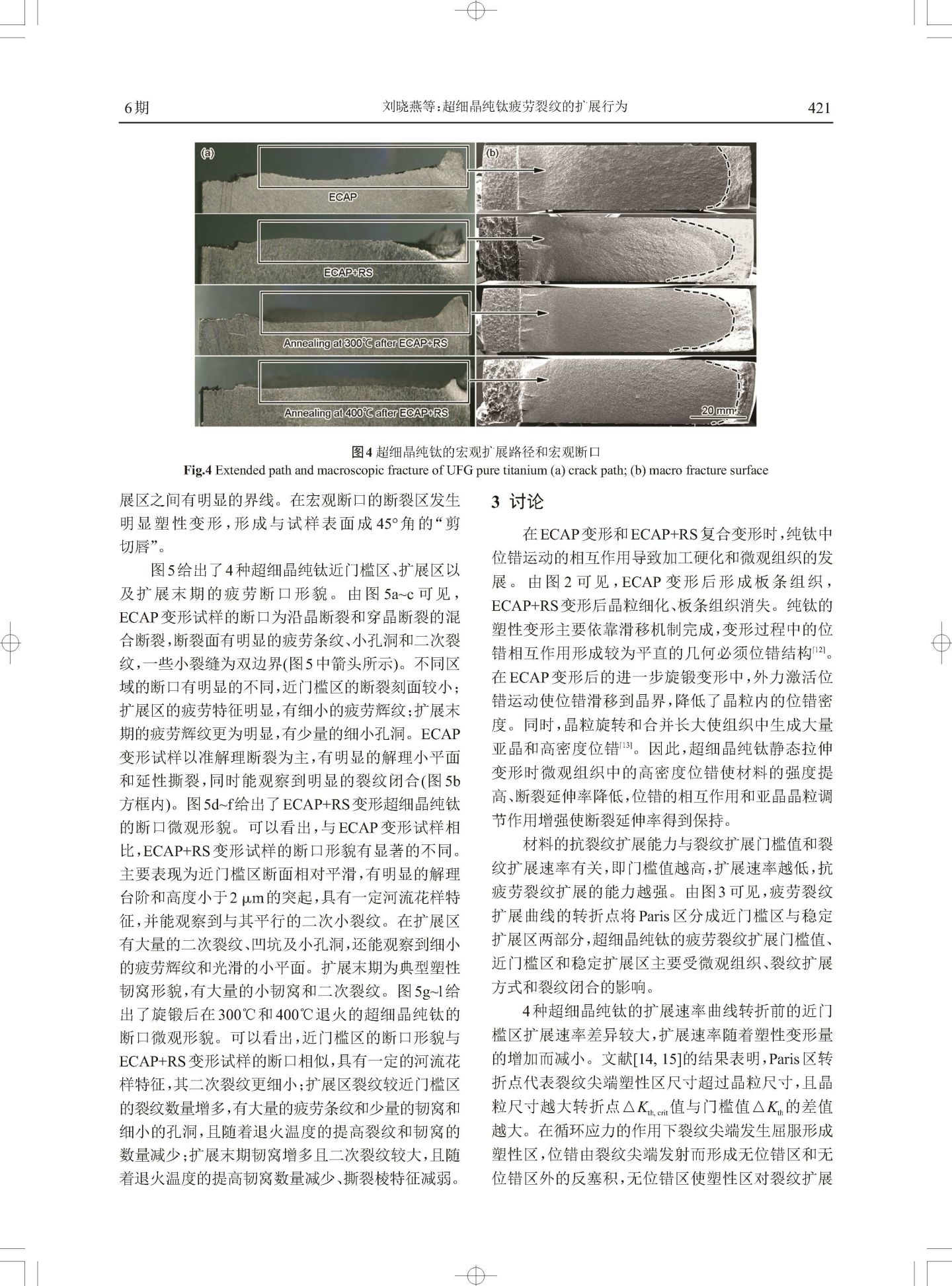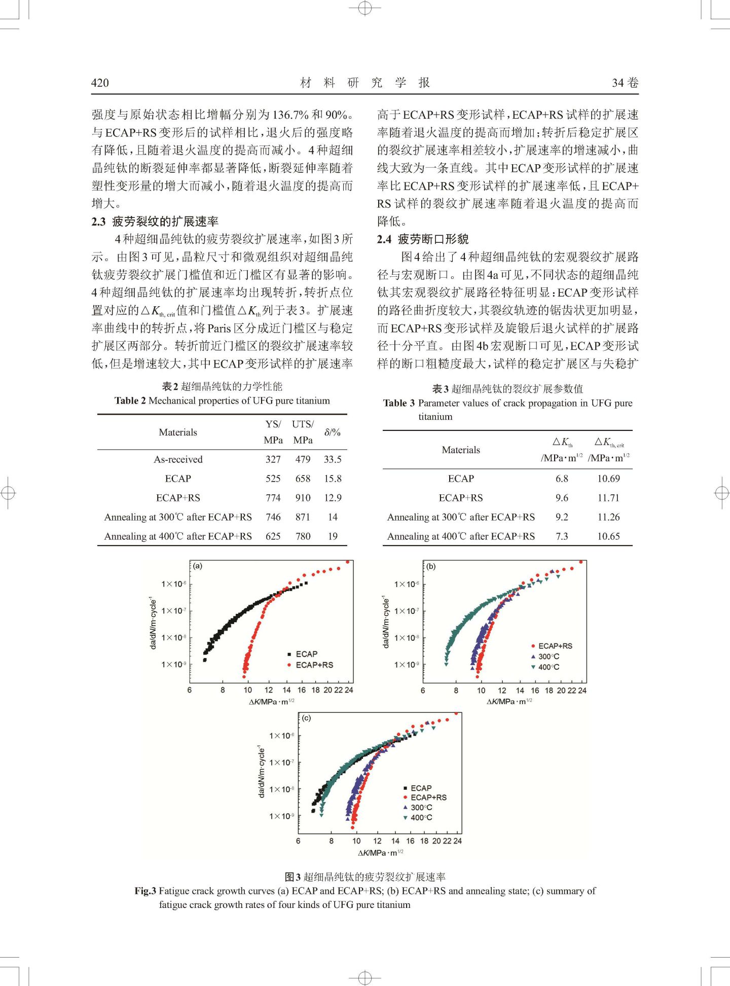 超细晶纯钛疲劳裂纹的扩展行为