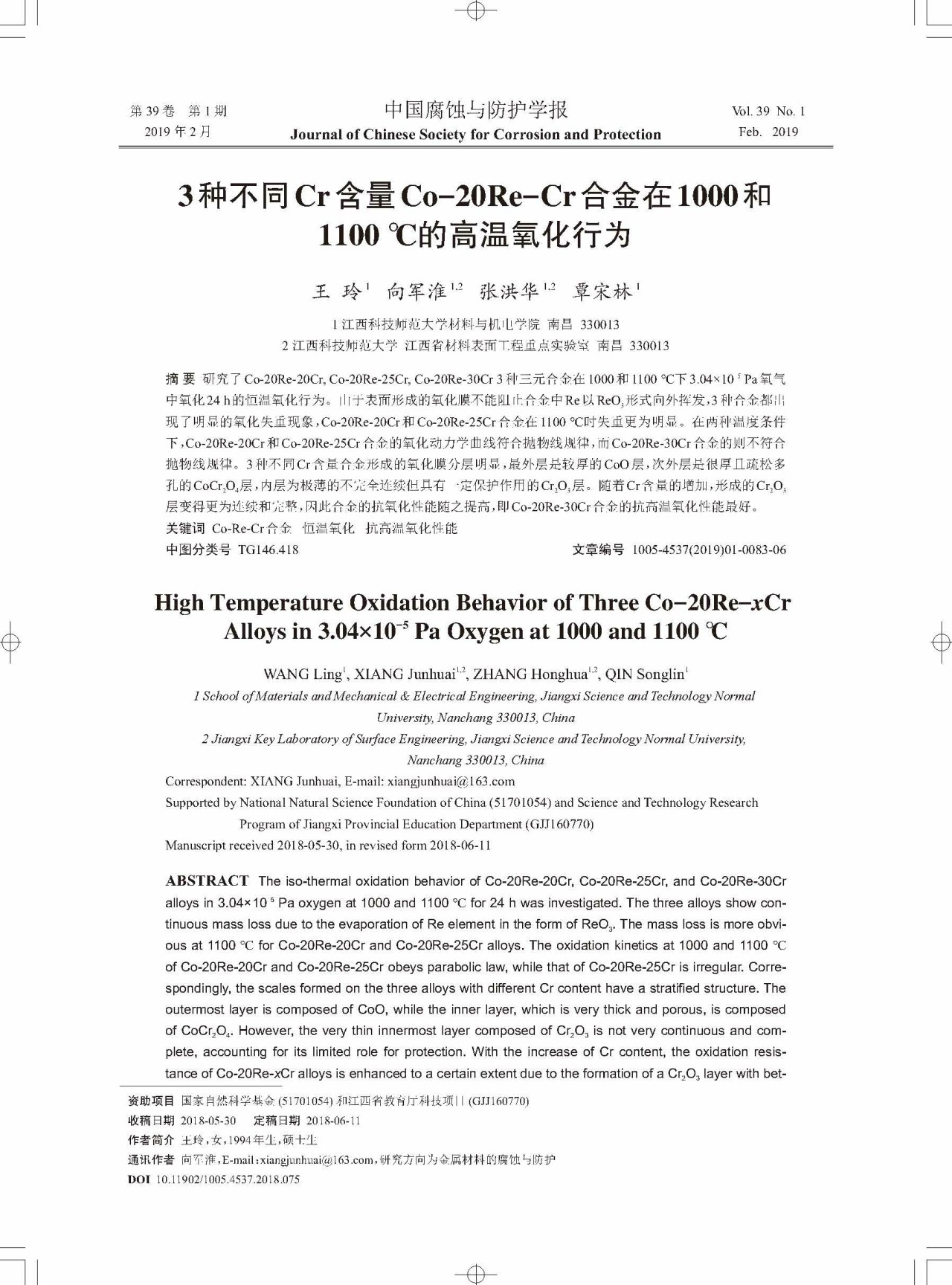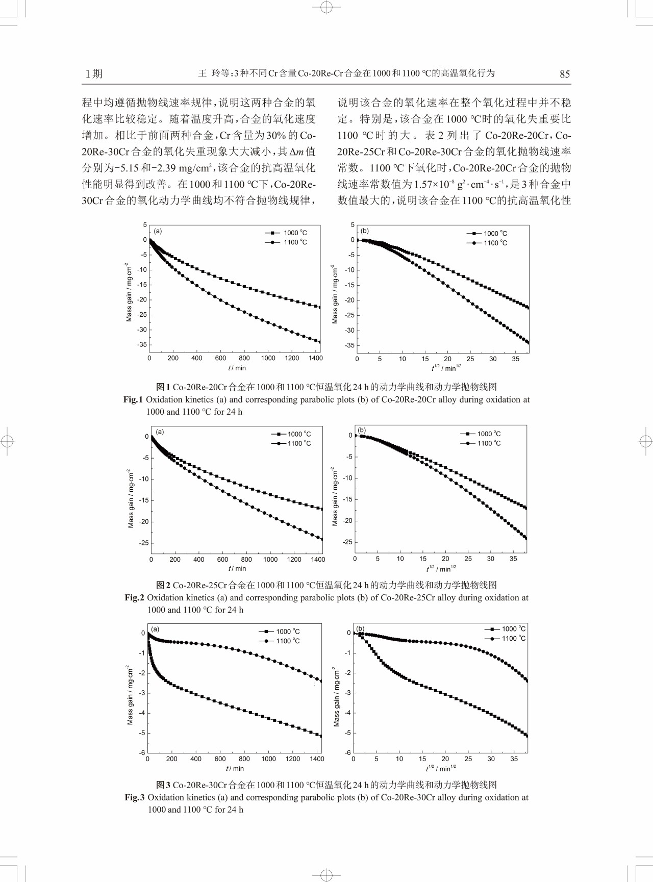 标签: Co-Re-Cr合金, 恒温氧化, 抗高温氧化性能