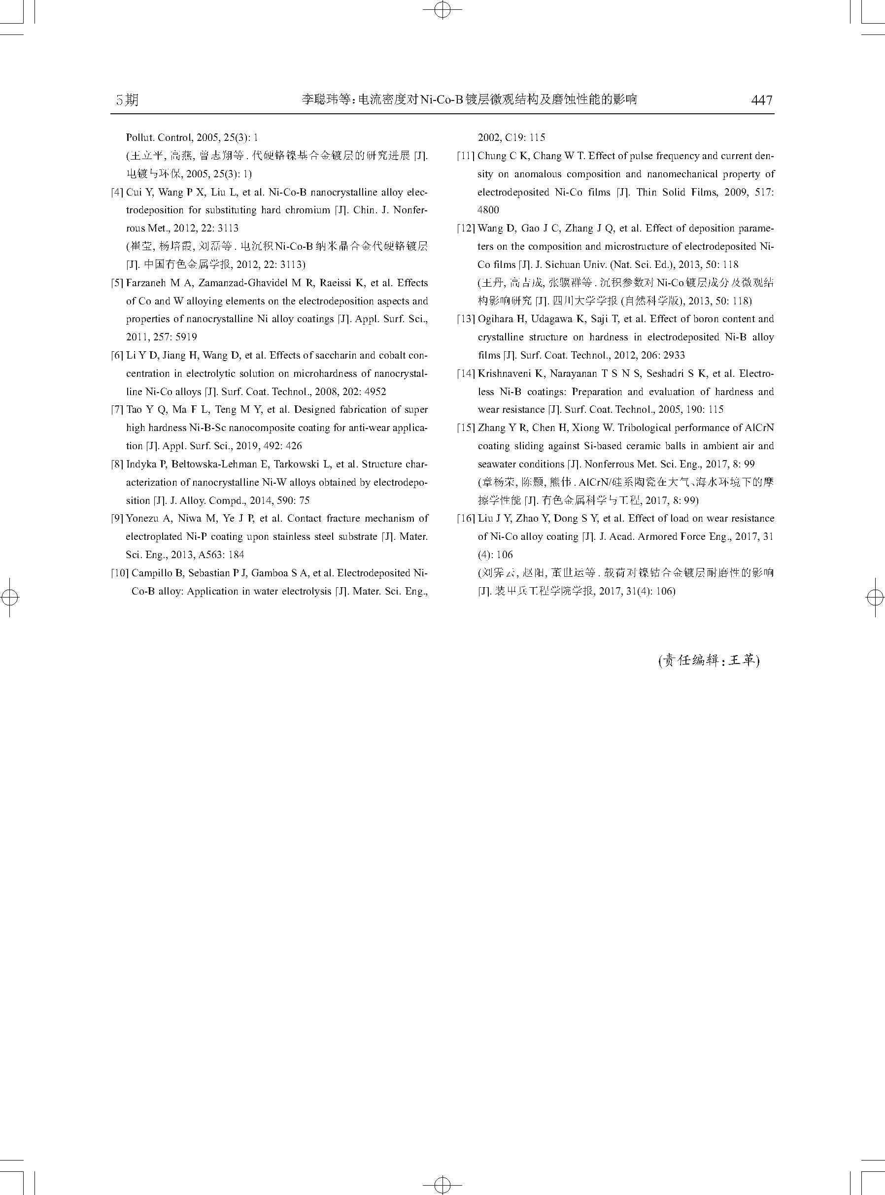电流密度对Ni-Co-B镀层微观结构及磨蚀性能的影响