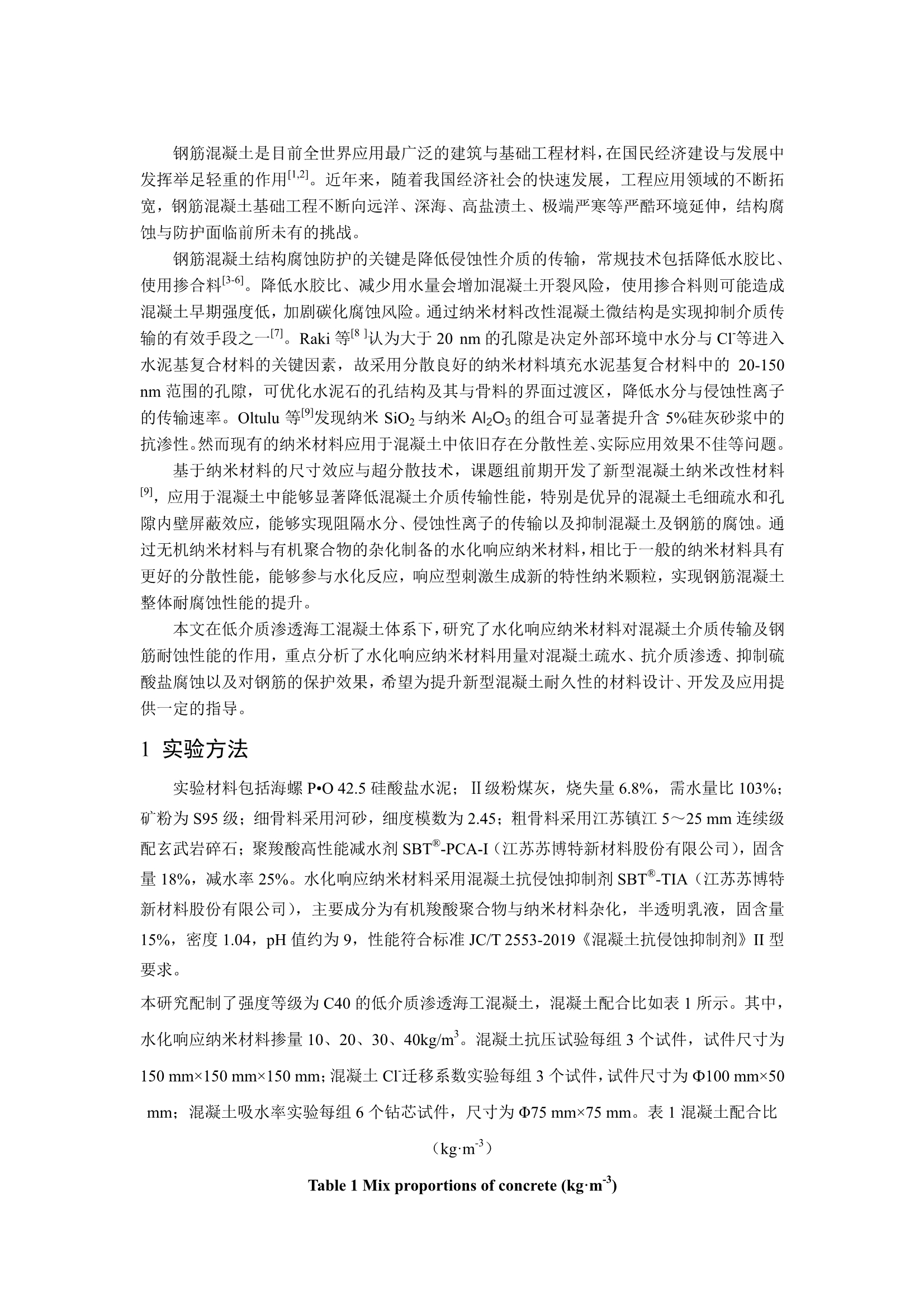 水化响应纳米材料对钢筋混凝土整体耐蚀性能影响