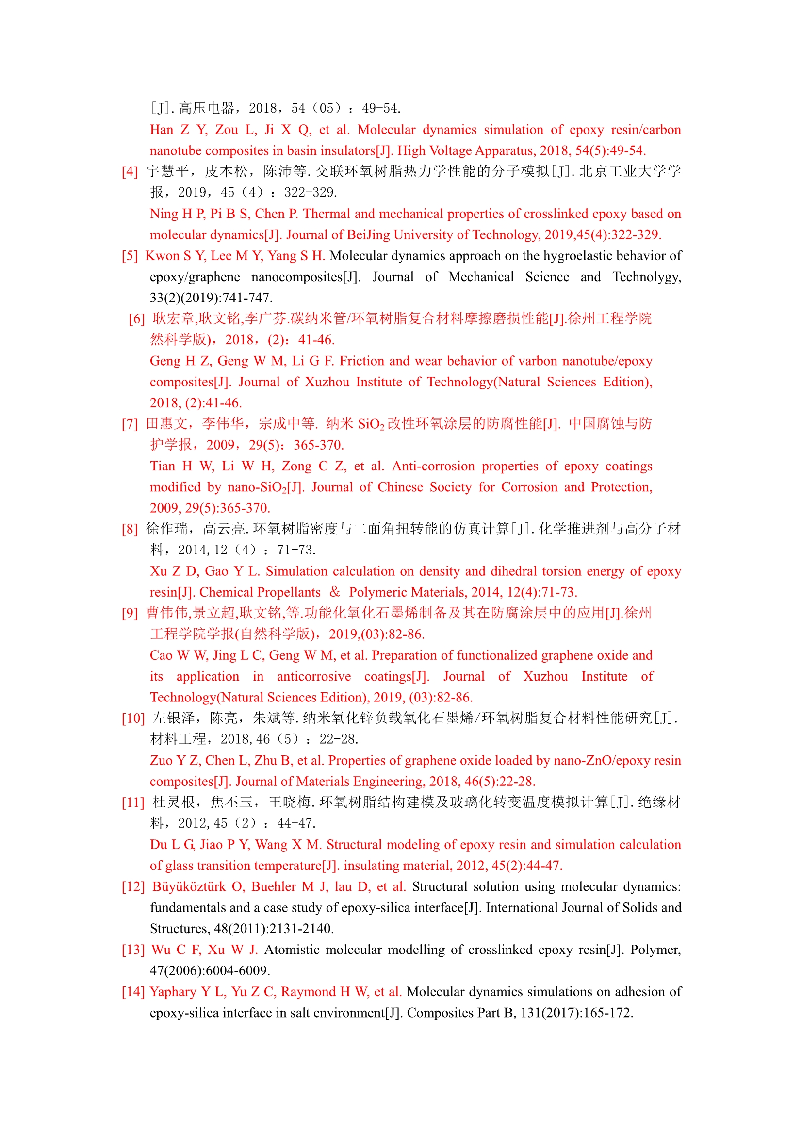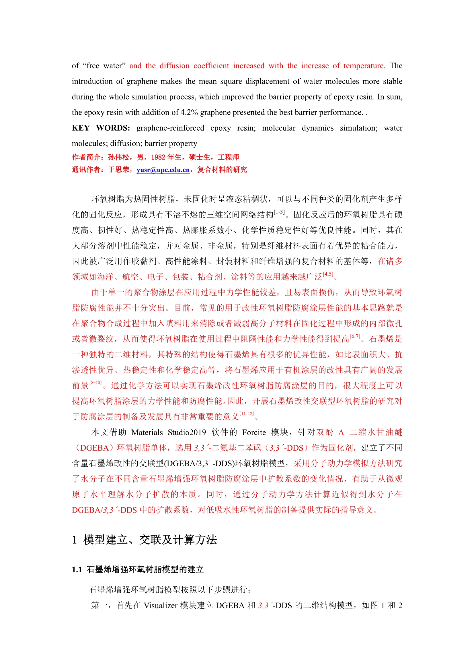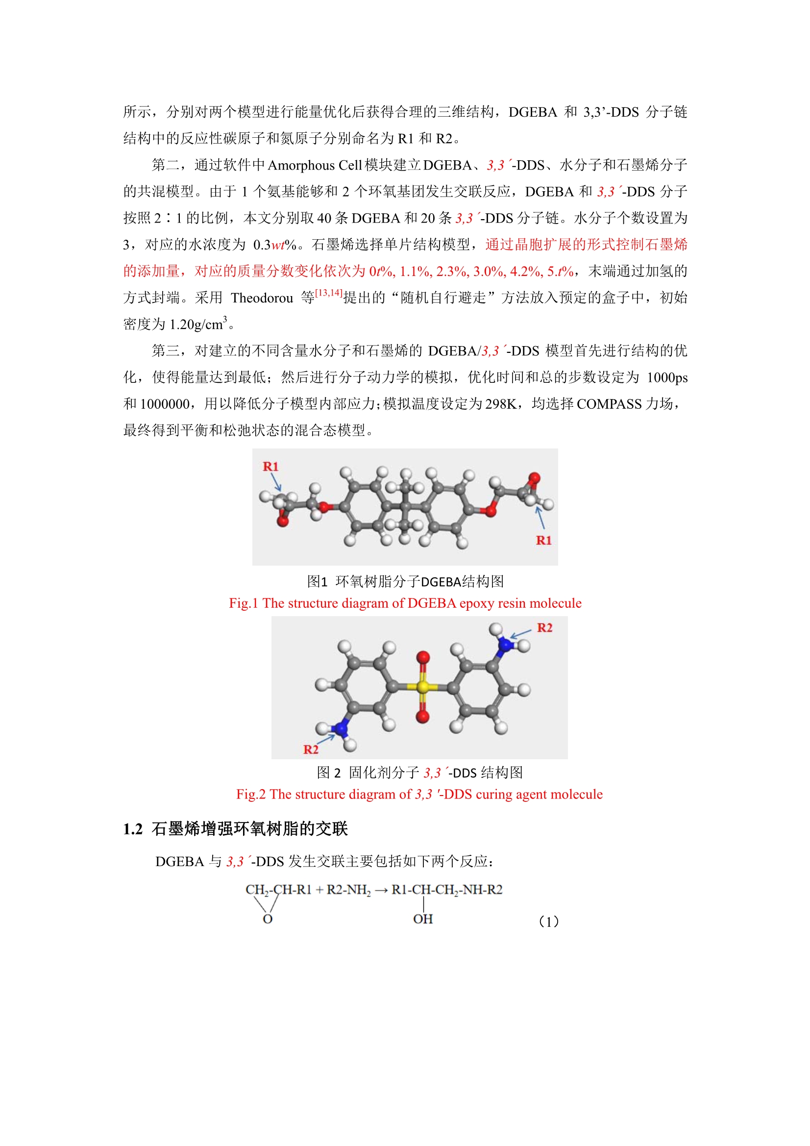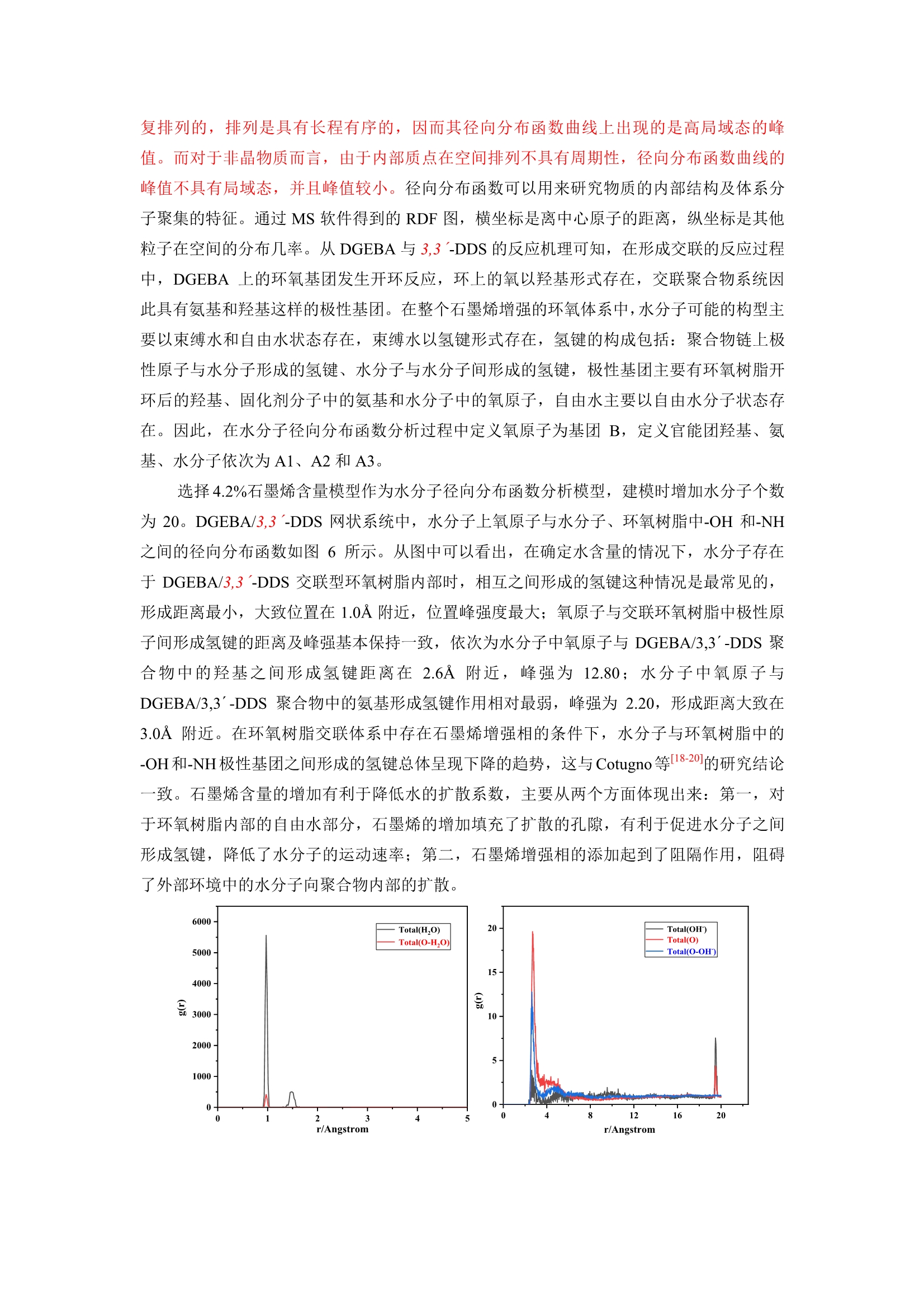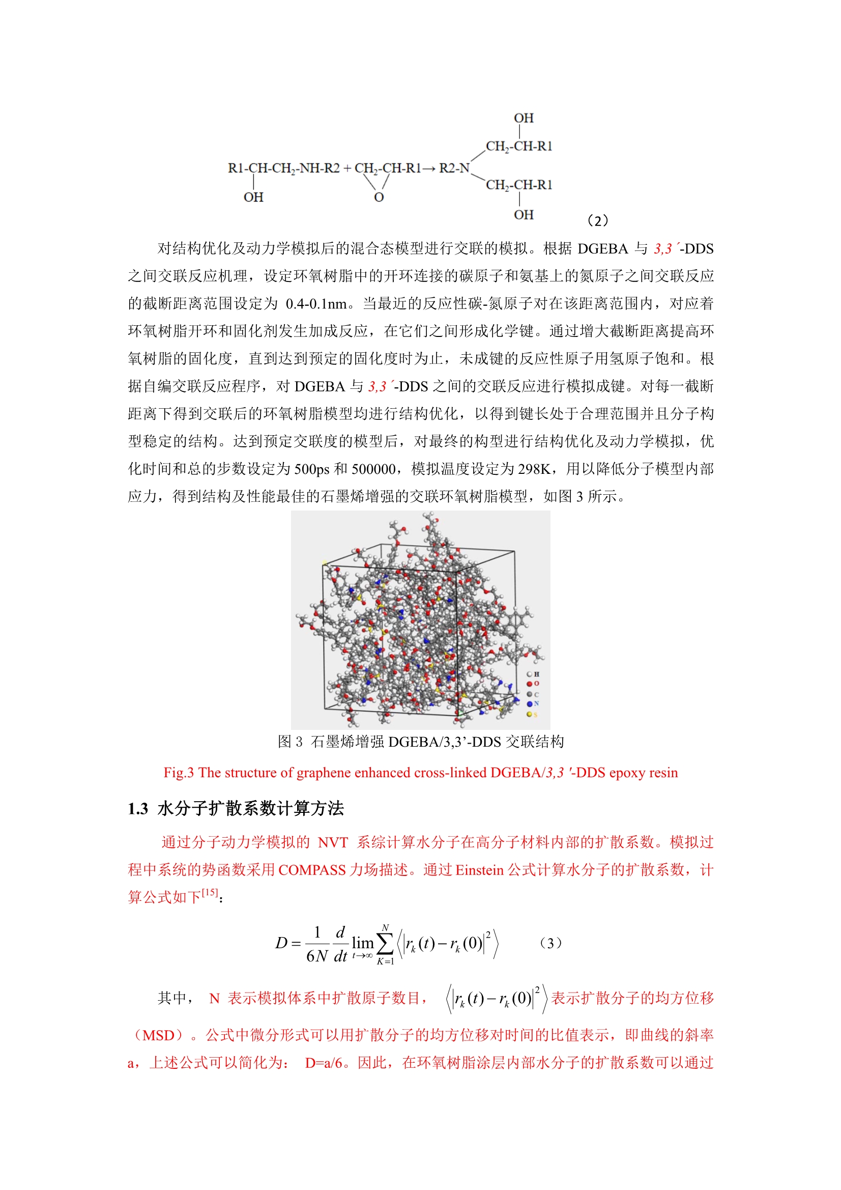 水分子在石墨烯增强环氧树脂防腐涂层扩散的分子动力学模拟