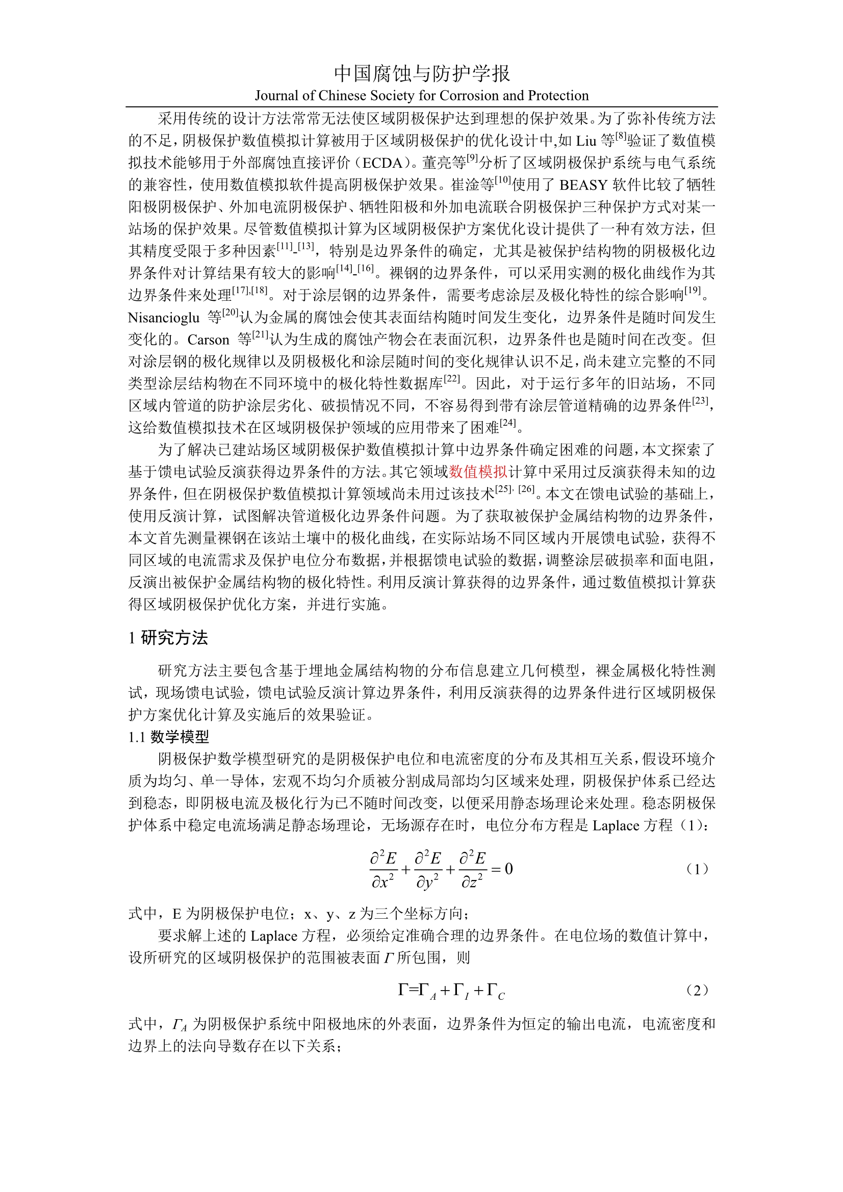 区域阴极保护数值模拟边界条件反演计算方法研究及应用