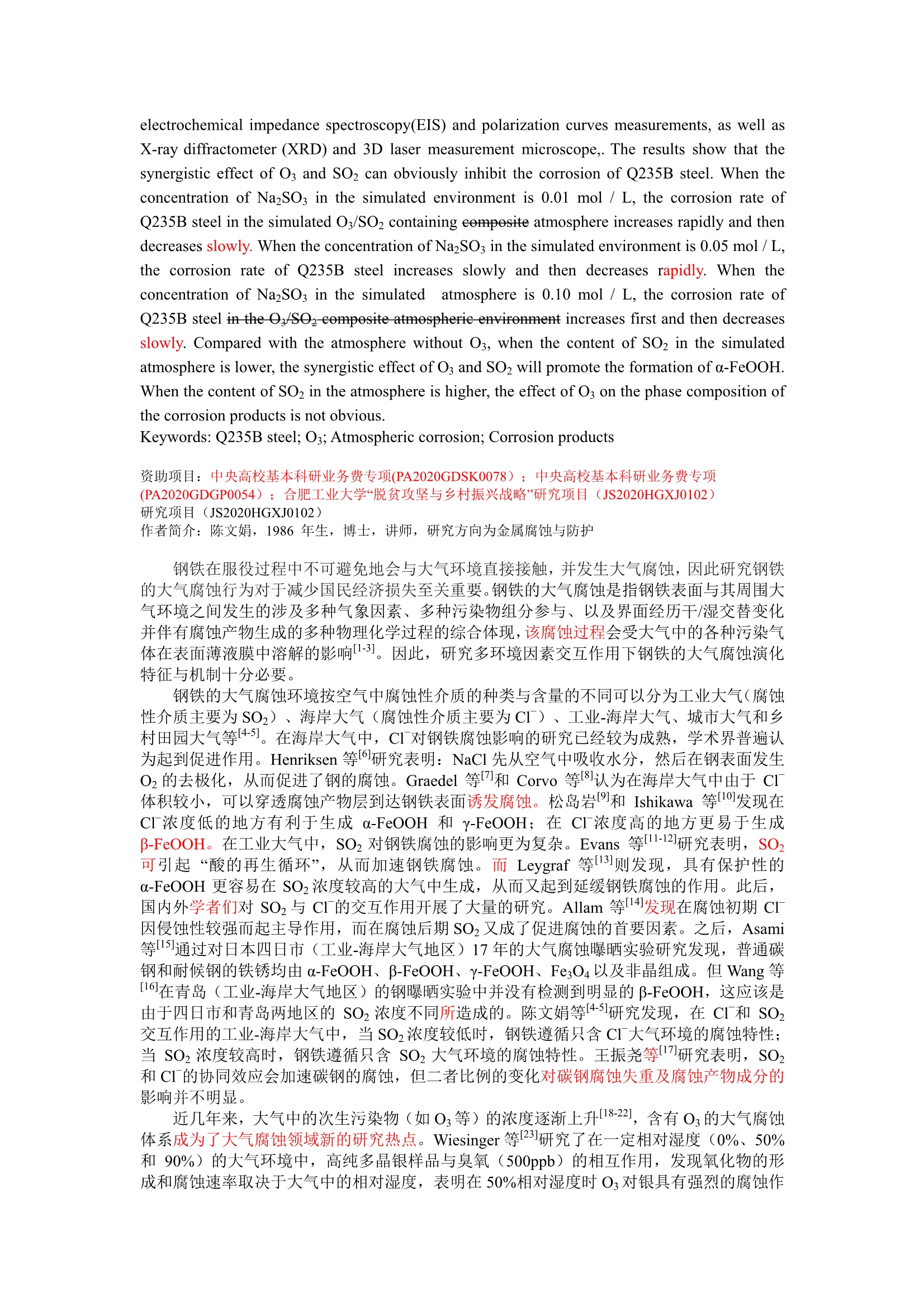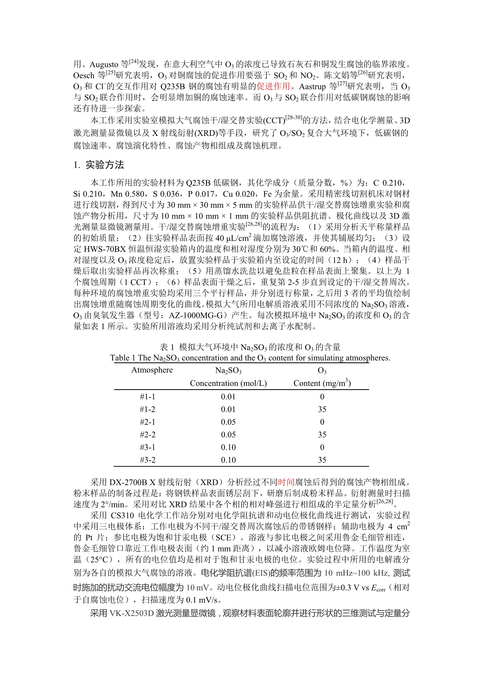 O3/SO2复合大气环境中Q235B钢的腐蚀演化特性
