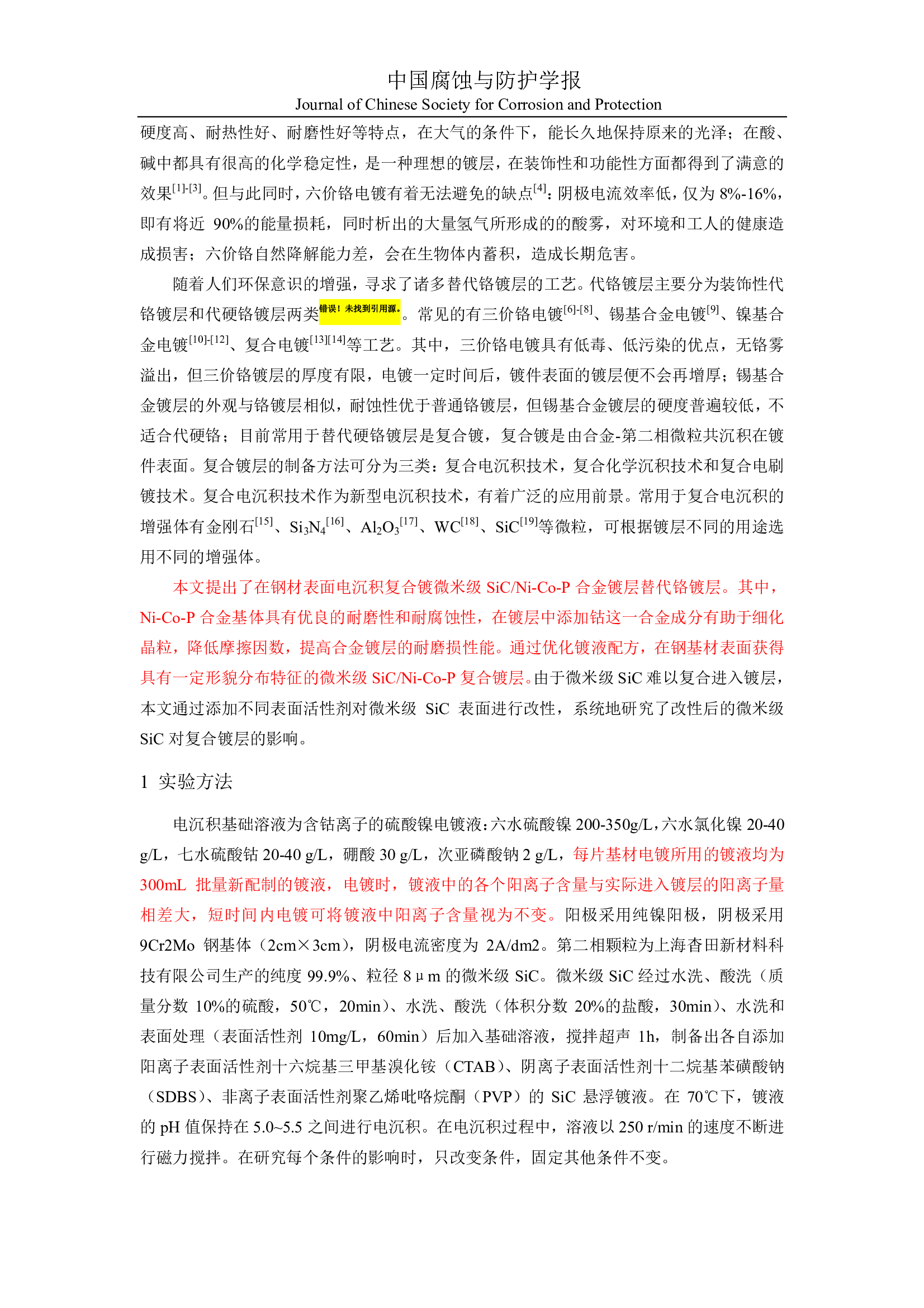 标签: 碳化硅-镍基复合材料, 碳化硅改性, 镍基合金电沉积, 碳化硅含量