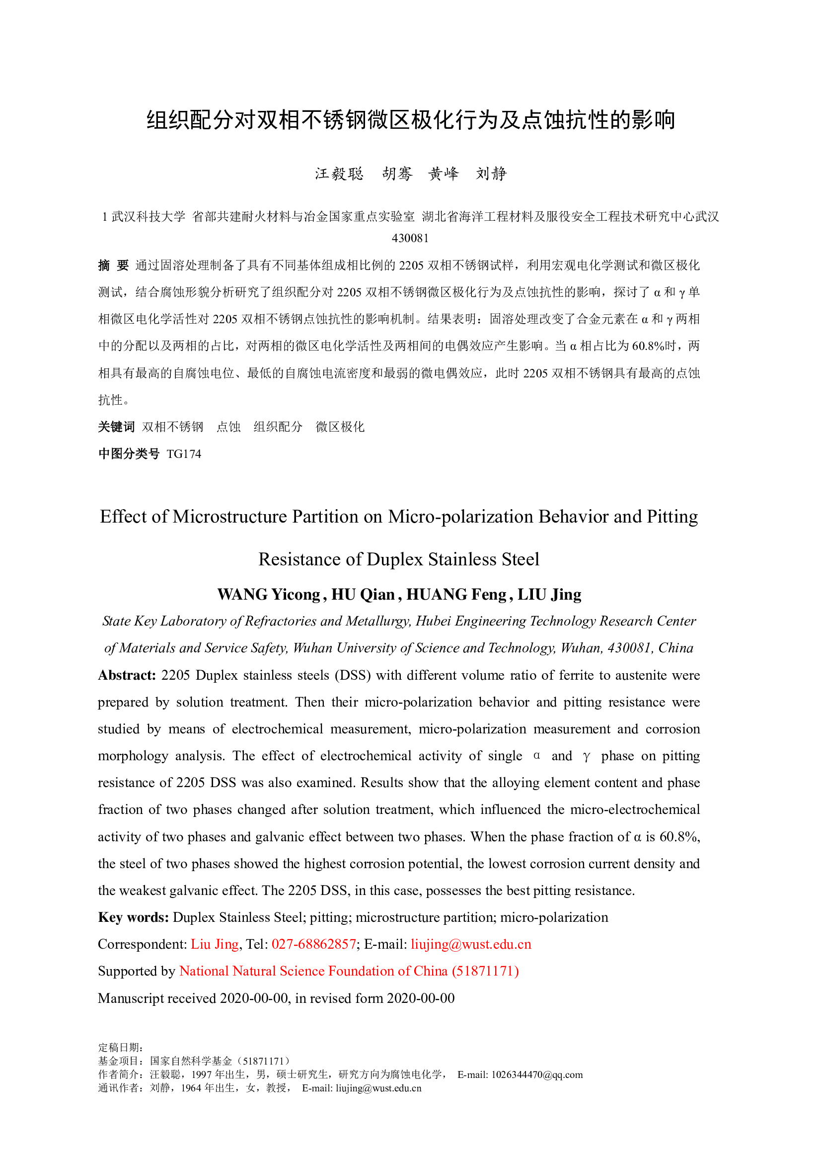 组织配分对双相不锈钢微区极化行为及点蚀抗性的影响