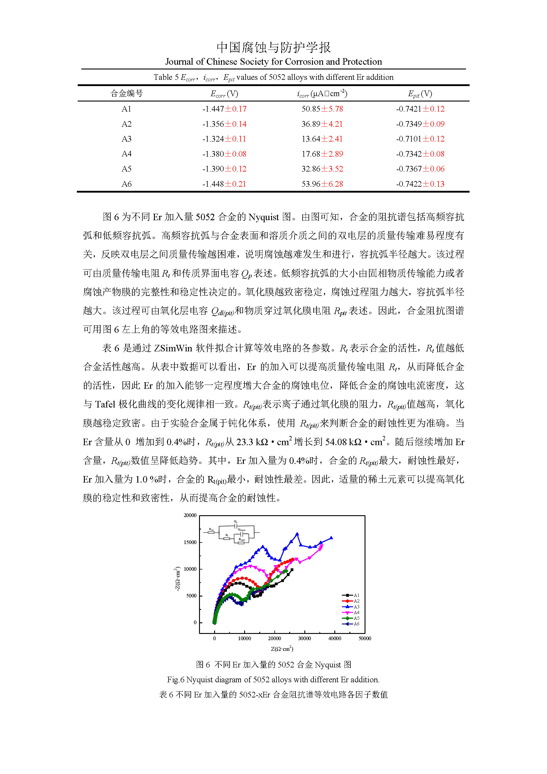 Er对海工5052铝合金腐蚀行为的影响