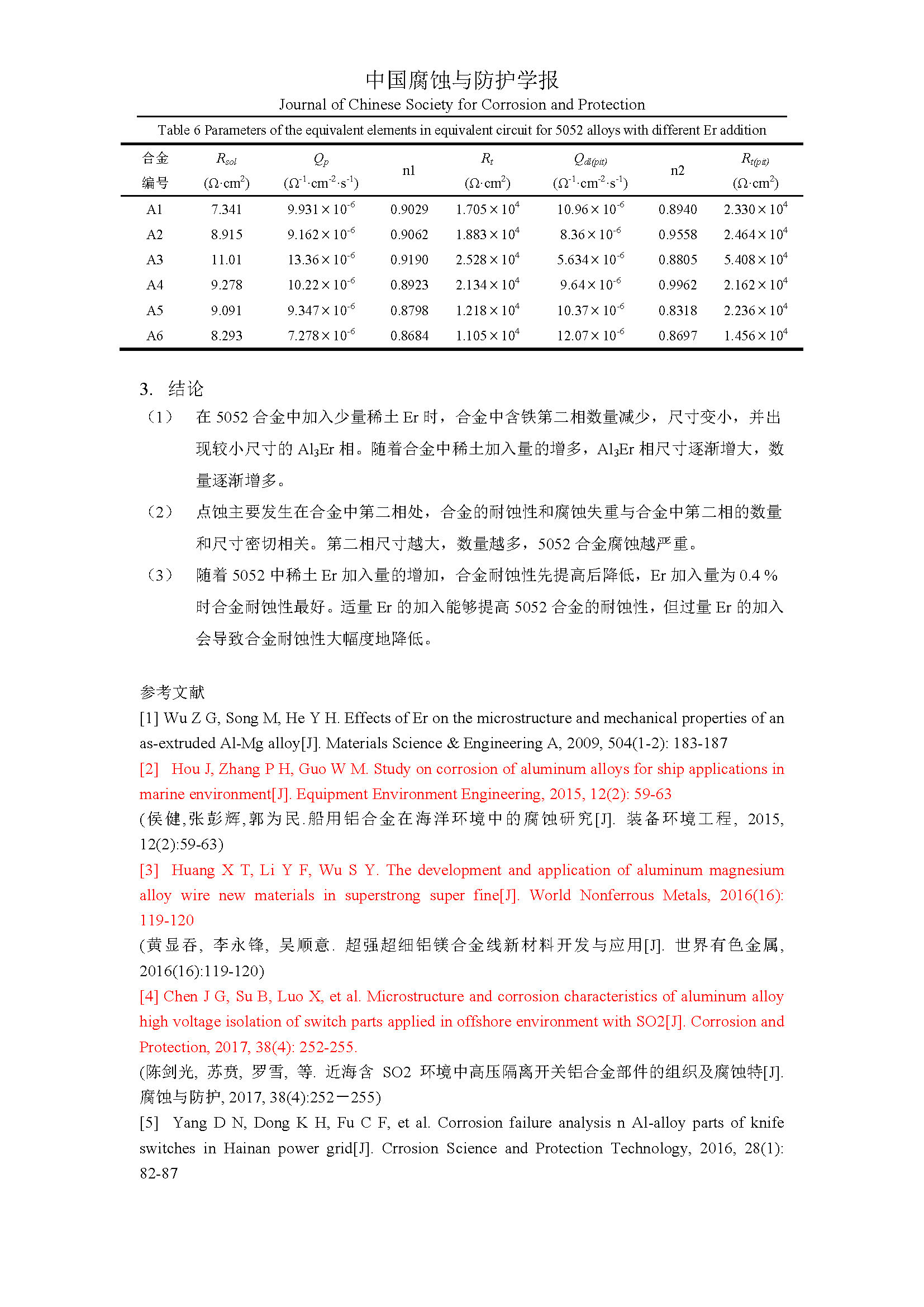 Er对海工5052铝合金腐蚀行为的影响