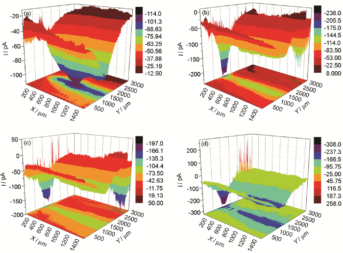 采用SECM的电流反馈模式以原位研究碳钢涂层缺陷处腐蚀过程中微区活性点的产生和变化以及拓扑形貌等信息,探讨不同浸泡时间、不同交流电流干扰强度对碳钢涂层缺陷处电化学活性点的影响,结合电化学阻抗谱技术和微观形貌分析,研究局部腐蚀特征及其机理。