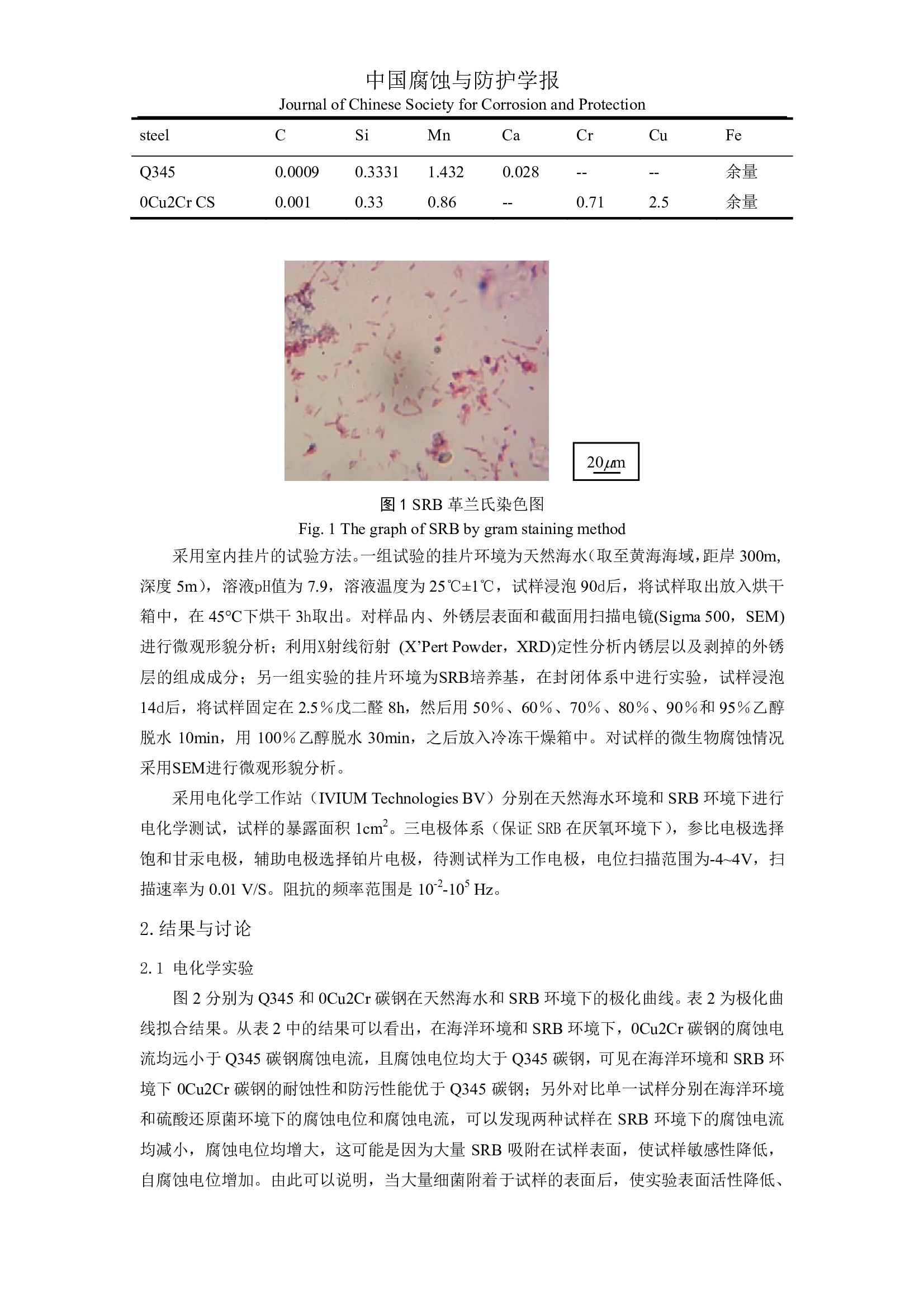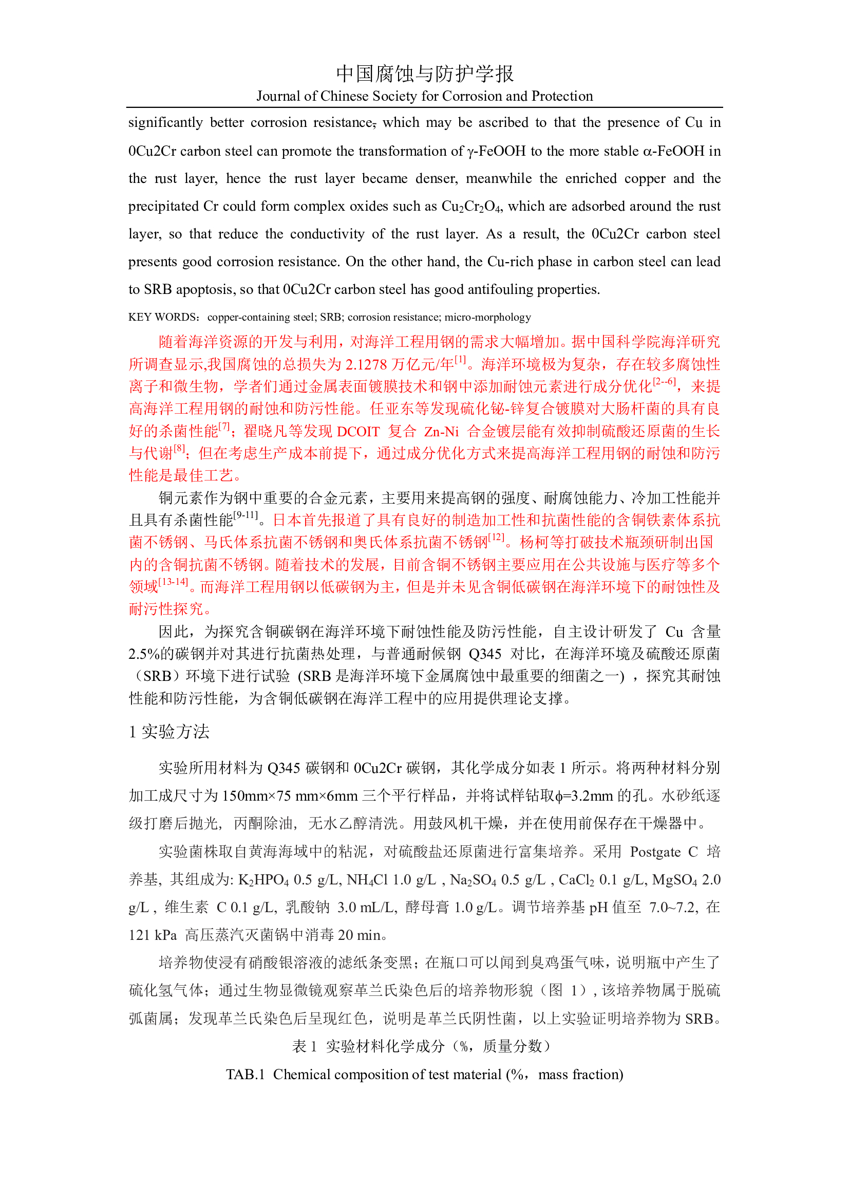 含铜低碳钢在海洋环境下的耐蚀和防污性能的研究