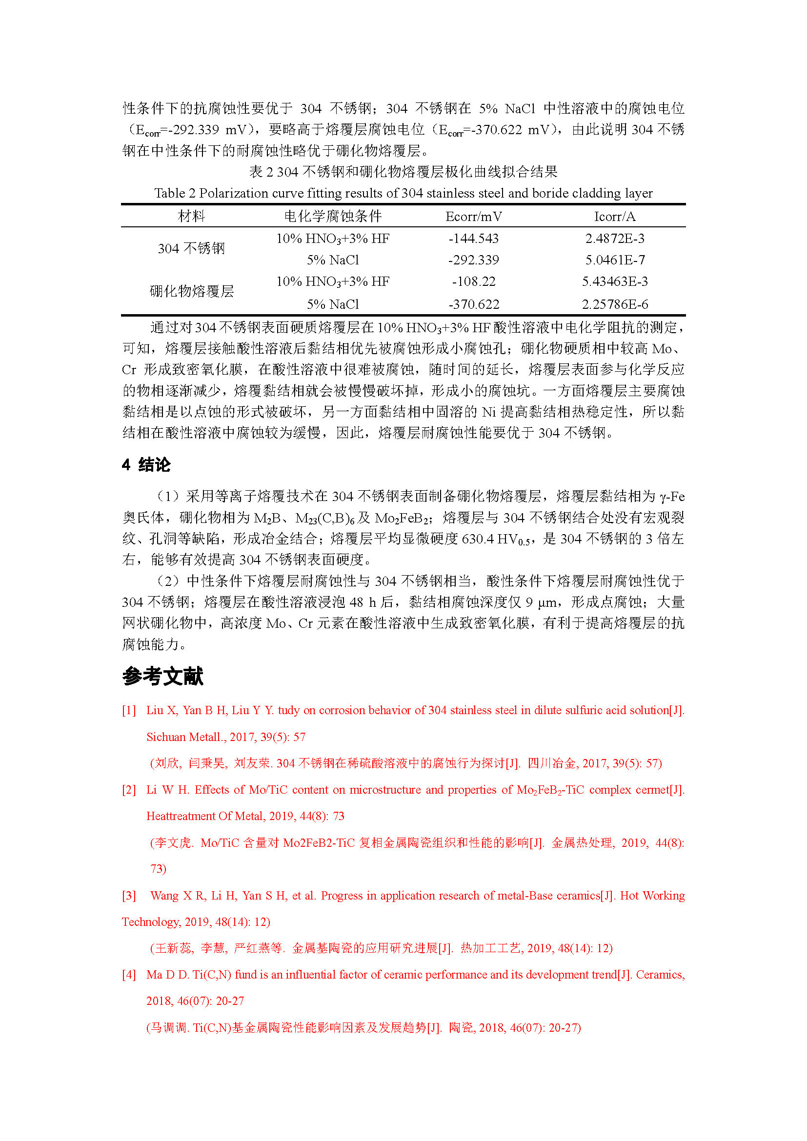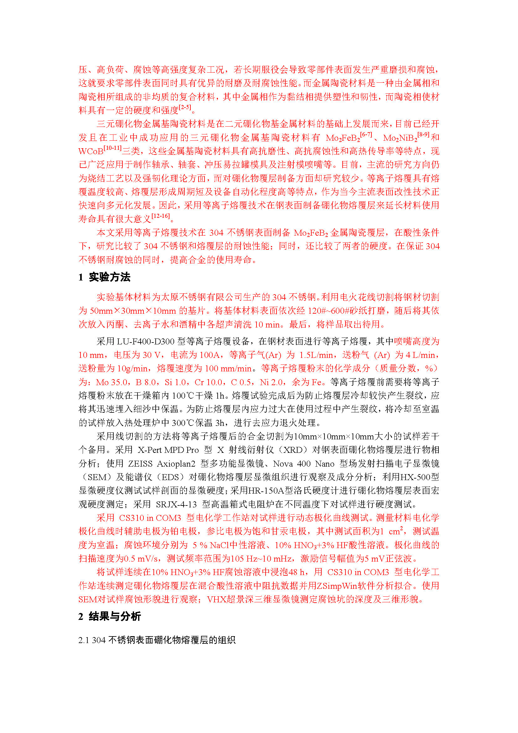 304不锈钢表面硼化物熔覆层的耐腐蚀性能研究