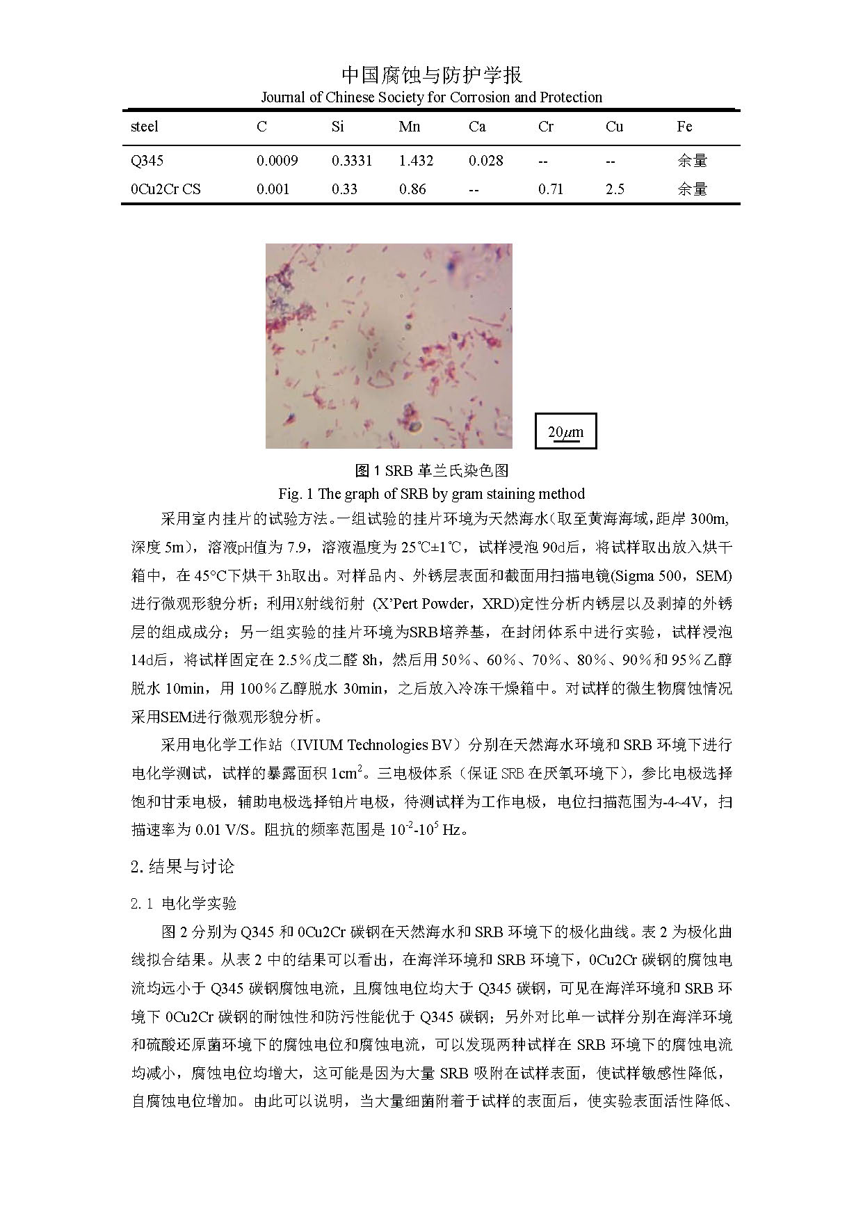 含铜低碳钢在海洋环境下的耐蚀和防污性能的研究